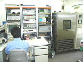 自動測定器 自動測定器は、その名の通り、 製品の品質を自動的に測定するシステムです。 プログラミングされたデータの従い、 自動的に測定を行っていく為、より早く、 より正確な製品評価を行なえます。 主に *常温データ *温度特性データ *エージングデータ を取っています。